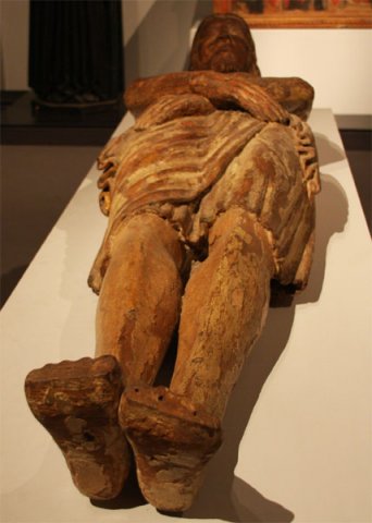 Il Cristo mancante di buona parte della policromia e della preparazione a gesso, ha perso nel volto l'espressione naturale ed è proivo di alcune parti di completamento come la tavola o pedana sulla quale era posto. Gesù giace disteso con il capo lievemente sollevato e le braccia incrociate all'altezza del bacino. Ampio e lungo il panno con regolari pieghe che ricopre anche le gambe fino alle ginocchia.