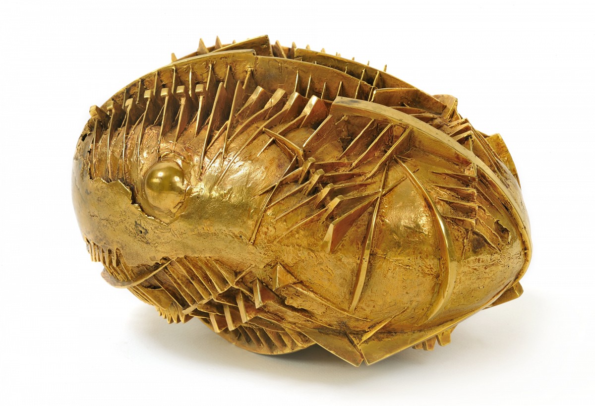 Sfera ovale di piccole dimensioni, in cui l'artista ricerca un rigoroso spirito geometrico: la sfera si scompone, si rompe, e si apre di fronte gli occhi dello spettatore, portando alla scoperta del meccanismo interno in contrasto con la levigatezza della forma.