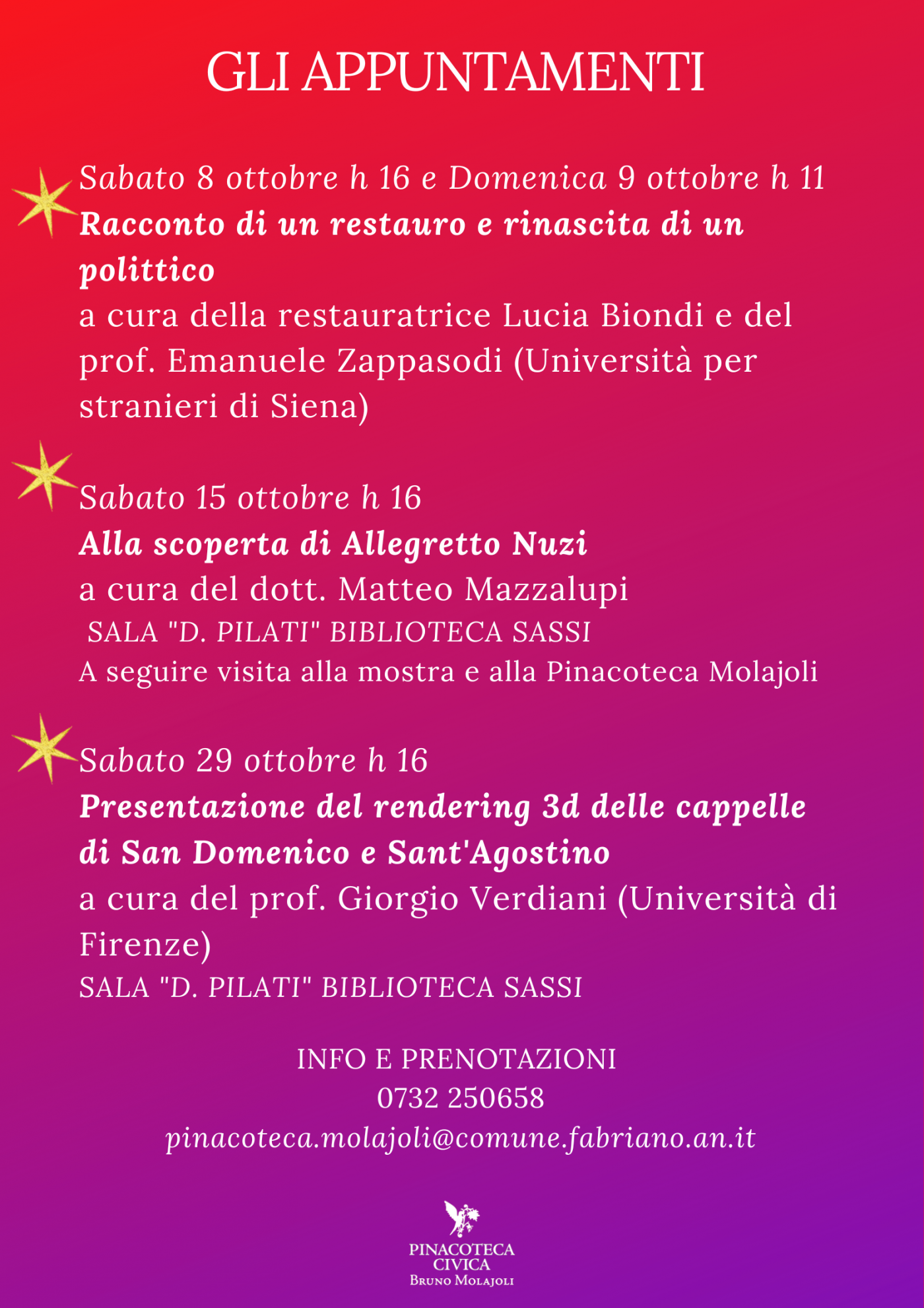 Info e prenotazioni 0732/250658 pinacoteca.molajoli@comune.fabriano.an.it