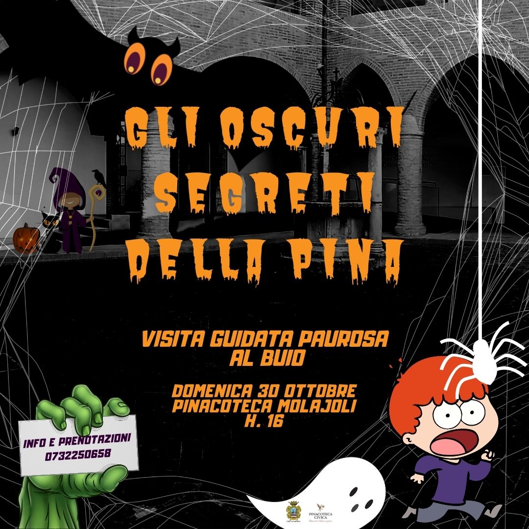 Dalle ore 16:00 ci prepareremo ad affrontare una visita guidata al buio, dedicata alle bambine e ai bambini che vorranno guadagnarsi un dolcetto o uno scherzetto. Dopo una breve introduzione sulle origini e la storia di Halloween i bambini saranno accompagnati alla scoperta di personaggi, dettagli misteriosi ed oscuri che si celano all'interno delle opere esposte nella collezione storica della Pinacoteca, in un percorso davvero avventuroso e adatto solo ai più coraggiosi!