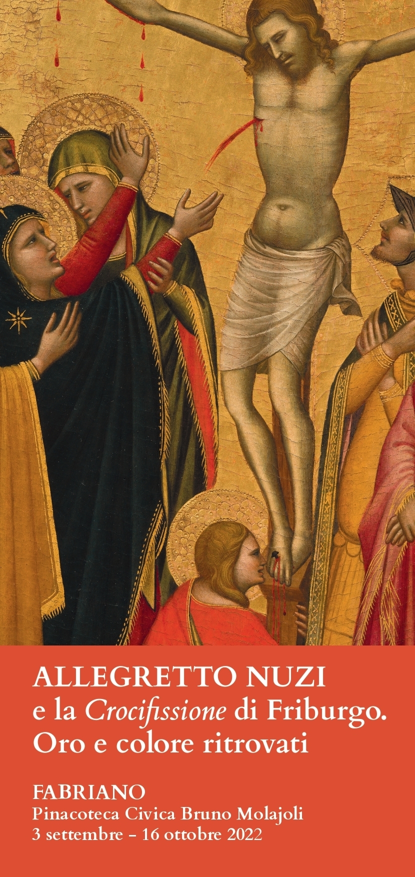 Sabato 3 settembre alle ore 16.30 presso il Palazzo del Podestà di Fabriano si inaugura l’evento «Allegretto Nuzi e la Crocifissione di Friburgo. Oro e colore ritrovati». In questa occasione verrà presentata l’opera di Allegretto Nuzi, la Crocifissione, proveniente dalla Chiesa delle suore Orsoline di Friburgo (Svizzera), al termine di un importante e delicato lavoro di restauro realizzato dalla dott.ssa Lucia Biondi presso il suo studio di Firenze. Il progetto di restauro è stato avviato al termine della mostra fabrianese dedicata ad Allegretto Nuzi e finanziato dal Convento delle Orsoline di Friburgo, grazie a un lavoro di sinergia indirizzato proprio a riportare al suo antico splendore l’opera, oggetto di importanti studi critici